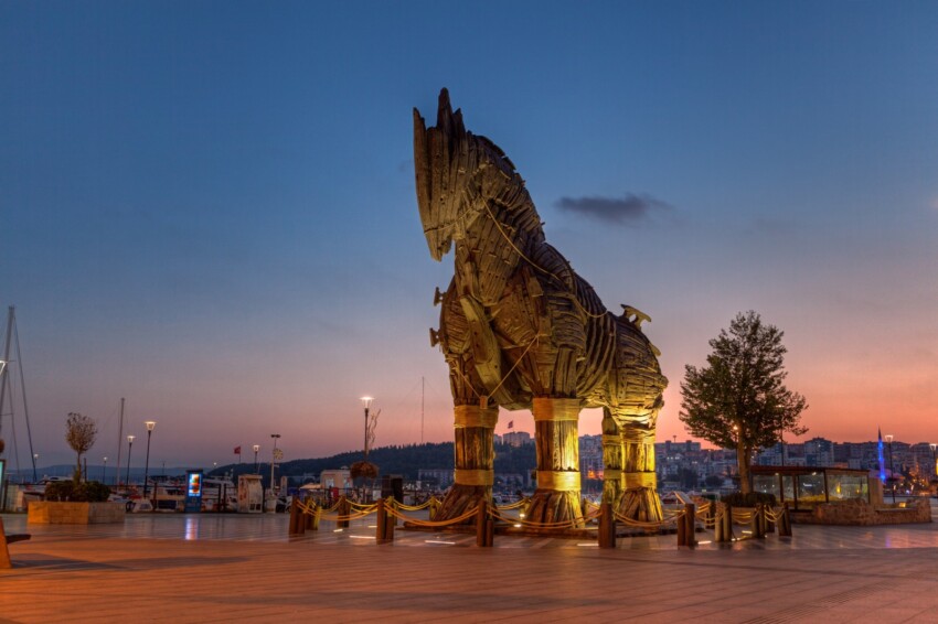 Le site archéologique abrite maintenant plusieurs témoignages datant de milliers d’années, notamment l’enceinte fortifiée, construite pour défendre le territoire urbain contre les attaques ennemies et mentionnée par Homère, ainsi que la Porte de Troie marquant le point de départ du parcours de visite. En progressant, on peut également admirer les vestiges du Temple d’Athéna et de la Maison de Priam, un vaste complexe qui était probablement la demeure du célèbre roi troyen. Lors de la visite, il est impossible de ne pas remarquer aussi la reconstitution d’un grand cheval en bois réalisée pour commémorer celui utilisé par les Achéens dans la guerre et qui a servi à la prise de la ville et à leur victoire.