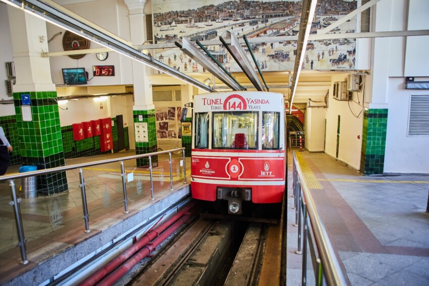 À Istanbul, il y a aussi quatre lignes de funiculaires dont une seule (la F3 Vadistanbul – Seyrantepe) fonctionne en surface, tandis que les autres sont souterraines. La plus célèbre et la plus utilisée par les touristes est le funiculaire F2 Karaköy-Beyoğlu Tünel qui, ayant été inauguré le 17 janvier 1875, est la deuxième plus ancienne ligne de transport souterrain au monde après le métro de Londres. Il n’a que deux stations (Karaköy et Beyoğlu) et relie facilement et rapidement le quartier de Karaköy à celui collineux de Beyoğlu.