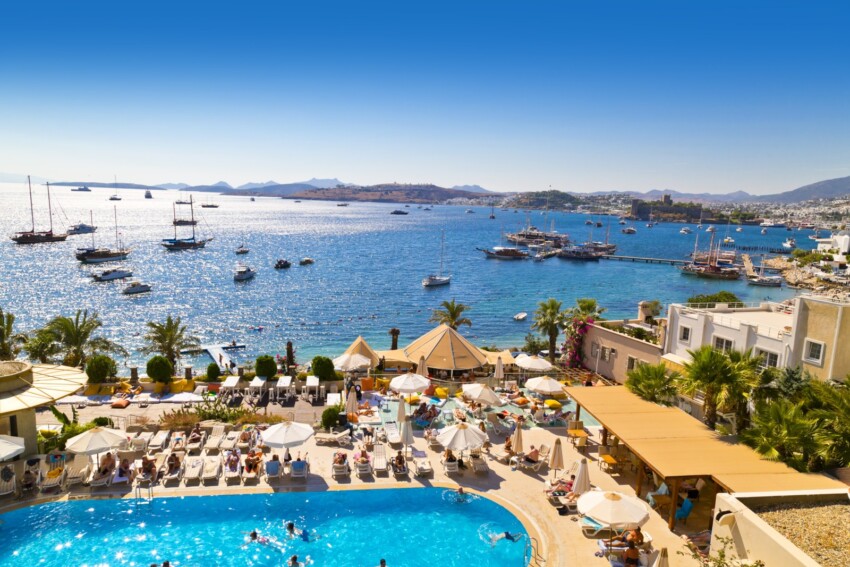Bodrum est la localité balnéaire la plus glamour de la côte égéenne, connue comme la Saint-Tropez turque. Le centre historique s’articule autour du château croisé et offre des hôtels-boutiques de charme dans des maisons blanches traditionnelles, tandis que la péninsule environnante accueille des resorts de luxe, des villas privées et des clubs de plage exclusifs. Les tarifs sont significativement plus élevés qu’ailleurs en Turquie, mais la qualité des établissements, des plages et de la vie nocturne justifie l’investissement pour qui recherche une expérience sophistiquée.