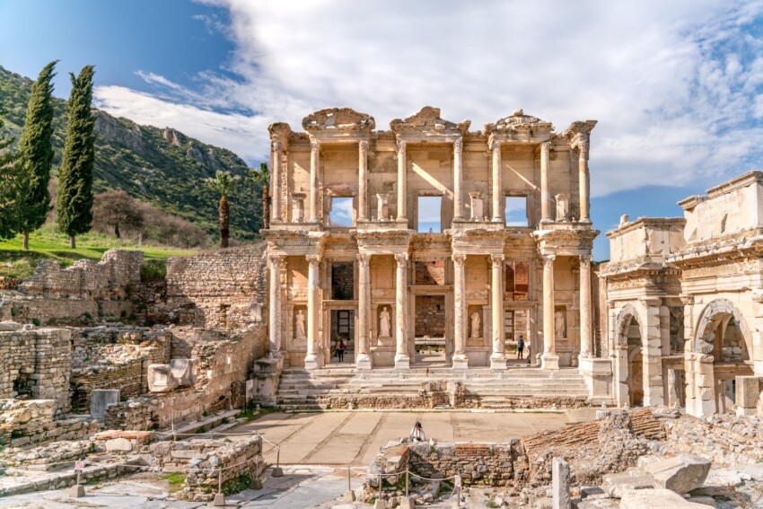 L’ancienne cité d’Éphèse était composée d’une grande agora et de deux quartiers principaux : l’un réservé à la vie politique et religieuse, l’autre dédié aux divertissements et aux loisirs de la population. Parmi les monuments les mieux conservés du site, il y a sans aucun doute la Bibliothèque de Celsus, l’Odéon, les Fontaines de Trajan, le grand Théâtre et le Temple d’Hadrien.