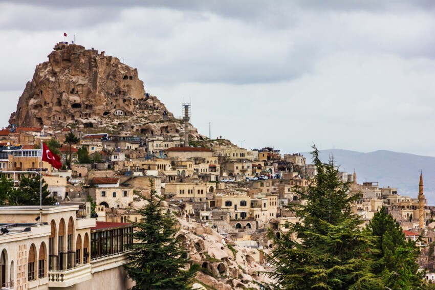 Une autre petite ville très fascinante de Cappadoce est Uchisar, un village tranquille situé à 5 km de Goreme et qui a été presque entièrement creusé dans le tuf. En plus de se promener dans les petites rues de la citadelle, où de nombreuses maisons ont été transformées en boutiques, magasins ou petits hôtels de charme, il est également possible de visiter ici le Château d’Uchisar (Kale). La forteresse a été construite sur le sommet d’un éperon rocheux et domine depuis le territoire urbain, offrant à ses visiteurs des panoramas spectaculaires sur toute la région environnante.